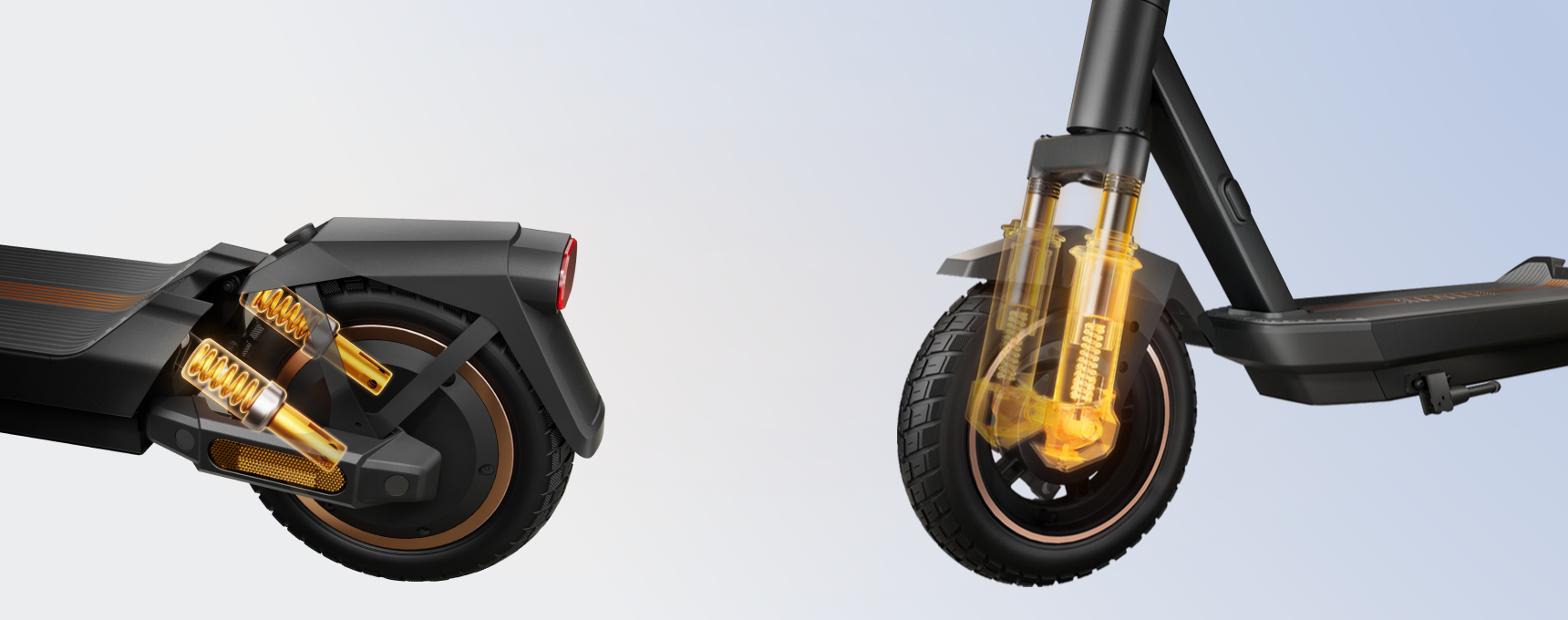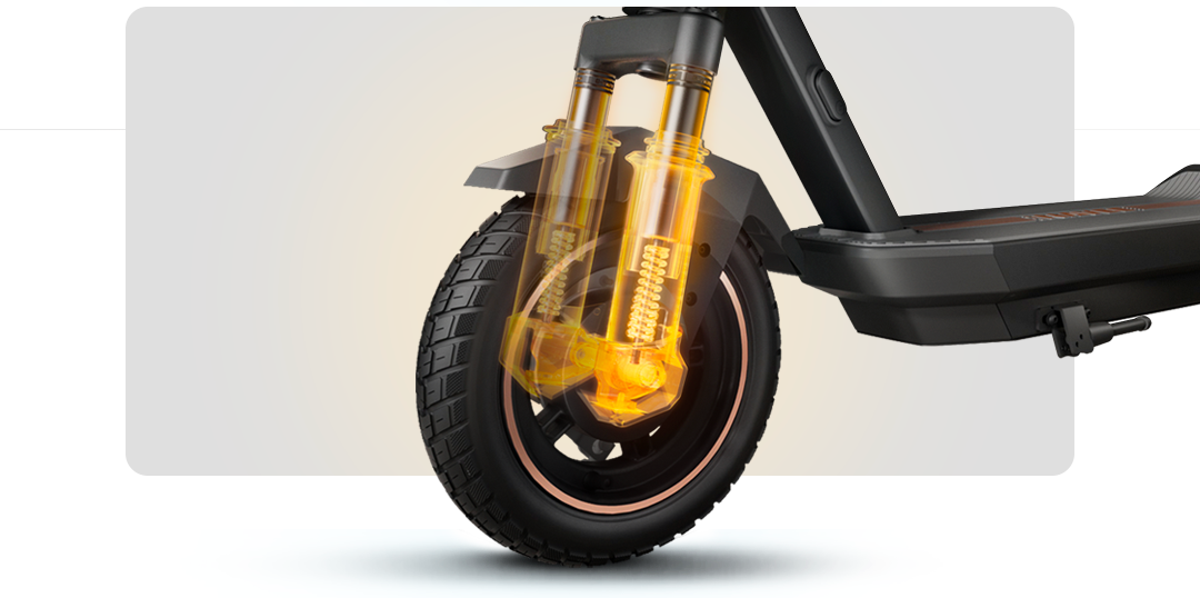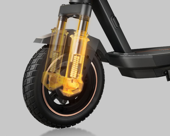 Featuring front fork and rear cylinder suspension, this scooter effectively absorbs vibrations from bumpy surfaces, ensuring a comfortable and enjoyable ride.