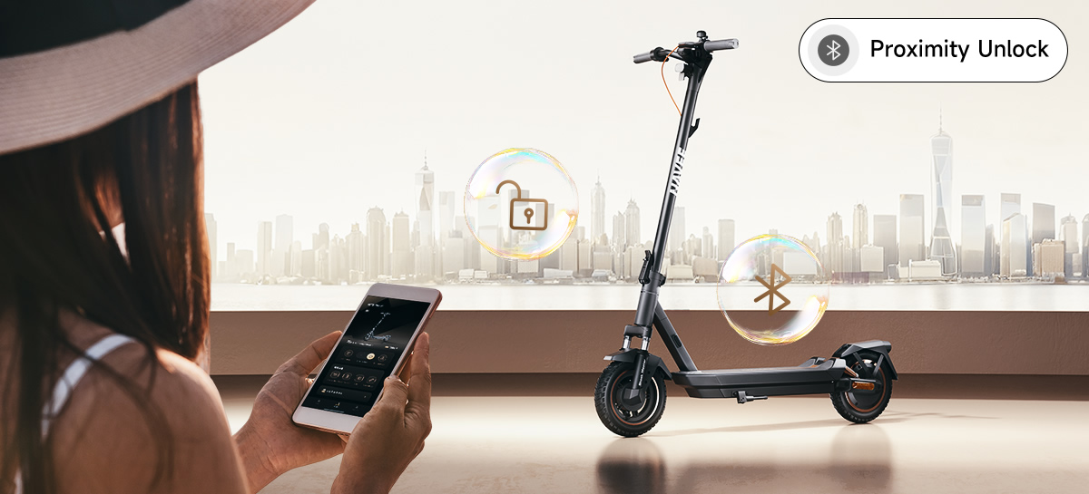 Effortlessly unlock your scooter when nearby using Bluetooth, and rest easy with automatic locking when you're not around.